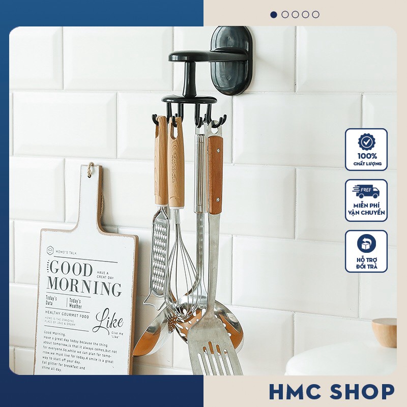 CHI TIẾT SẢN PHẨM:-Giá móc treo muỗng dao đa năng xoay 360 độ dán tường 8 móc