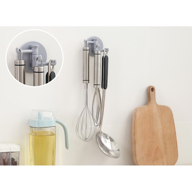 Móc Treo Đồ Dán Tường 3 Nhánh - Xoay 2 Bên - Siêu Tiện
