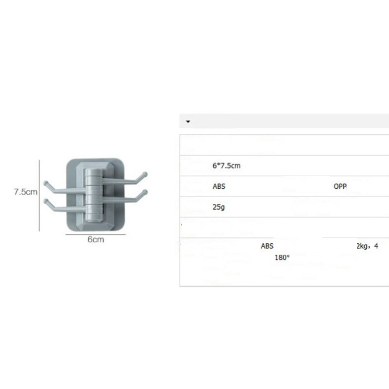 - Tên sản phẩm: Móc dán tường 4 móc treo đồ chịu lực xoay linh hoạt