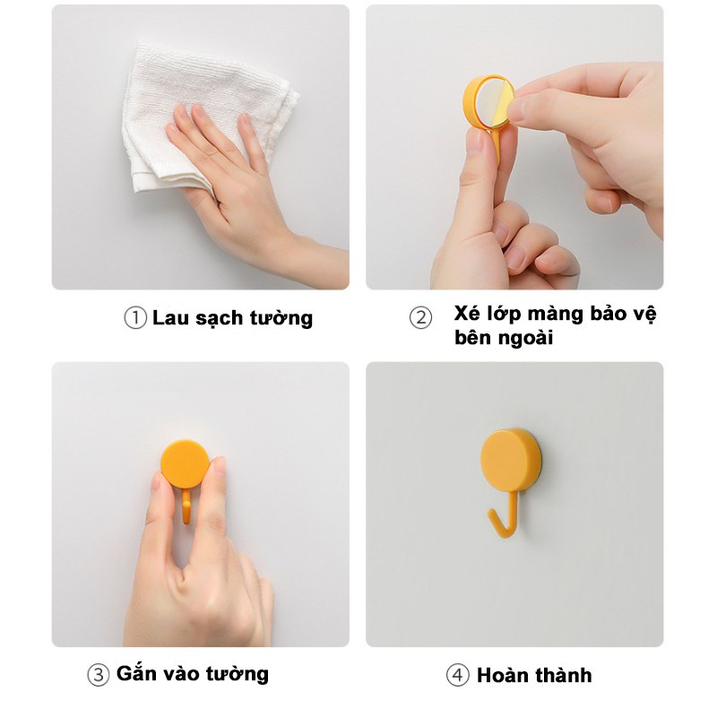 - Móc dán tường tiện dụng bền, chịu nước, không bong tróc.