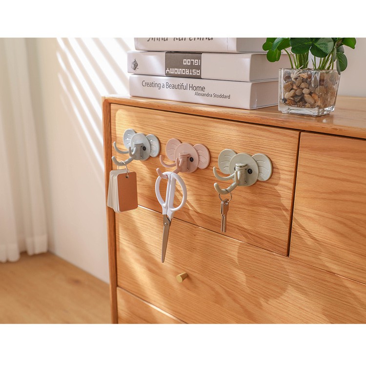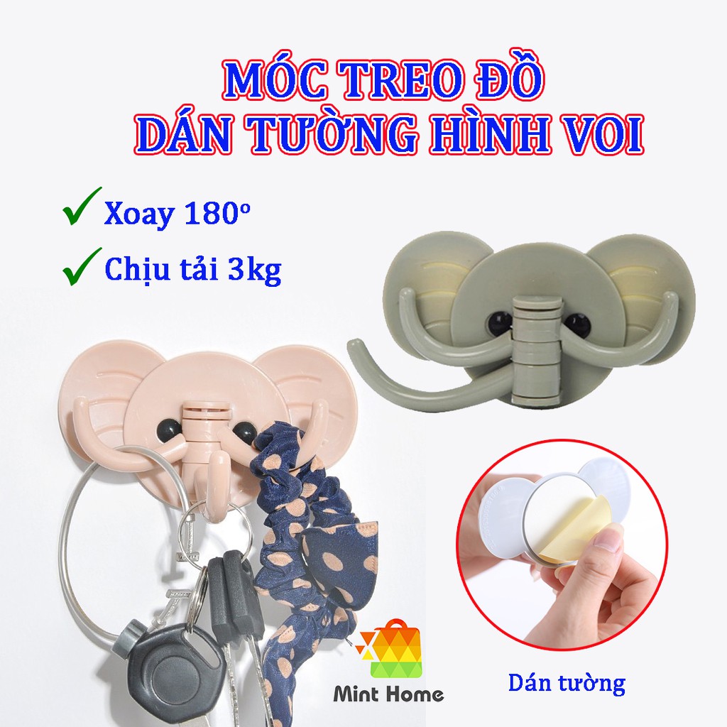 Móc treo đồ dán tường đa năng họa tiết hoạt hình con voi 3 chấu xoay tiện lợi siêu dính chịu lực keo 3M