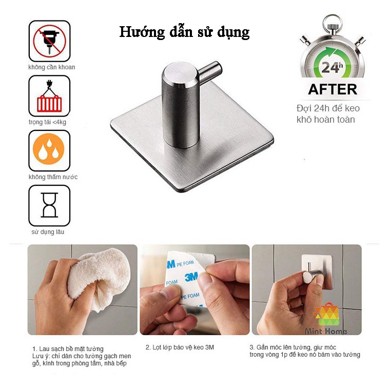 Giới thiệu Móc treo đồ dùng cá nhân, móc khóa đa năng thép không gỉ inox SUS304 có miếng dán tường keo xốp 3M siêu dính chịu lực