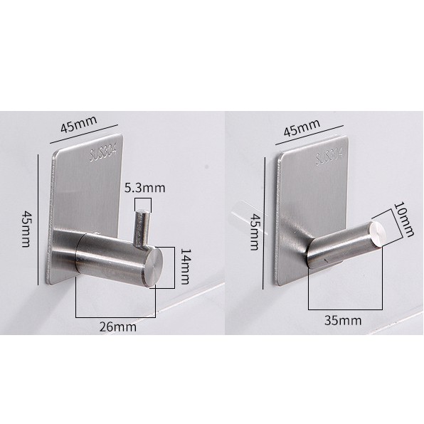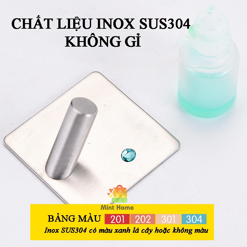 Móc treo đồ dùng cá nhân, móc khóa đa năng thép không gỉ inox SUS304 có miếng dán tường keo xốp 3M siêu dính chịu lựcChất liệu Inox SUS304 (Cam Kết)