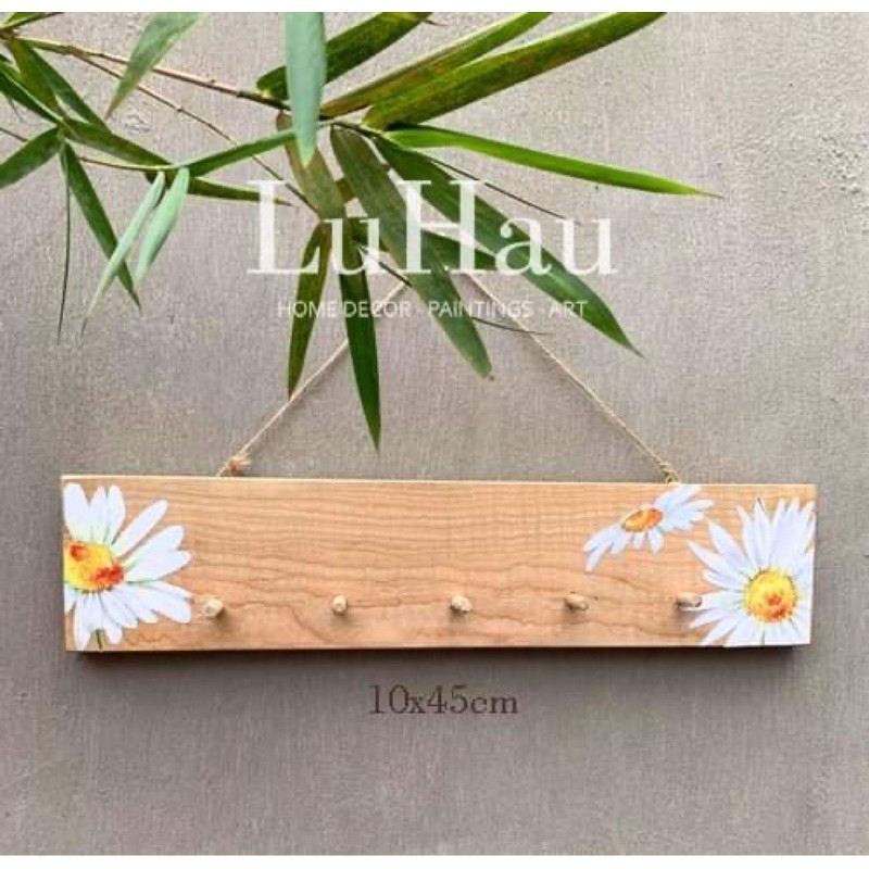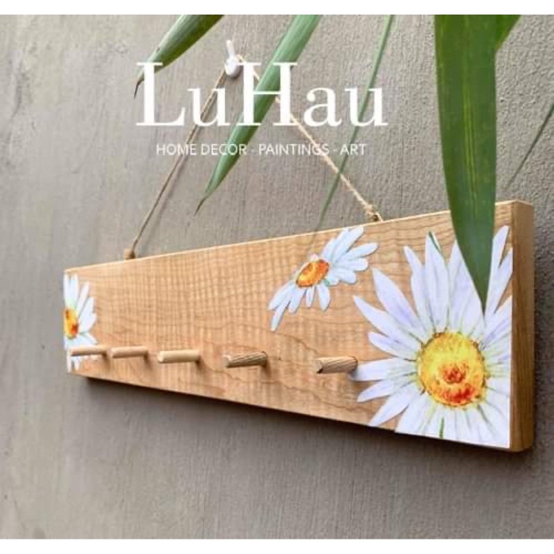 Nhà cửa & Đời sống > Sắp xếp nhà cửa > Móc treo || Thanh móc treo đồ gỗ tự nhiên Luhau Decor Cúc hoạ mi gắn tường 5 móc không cần khoan đục, móc treo chìa khoá.Còn hàng