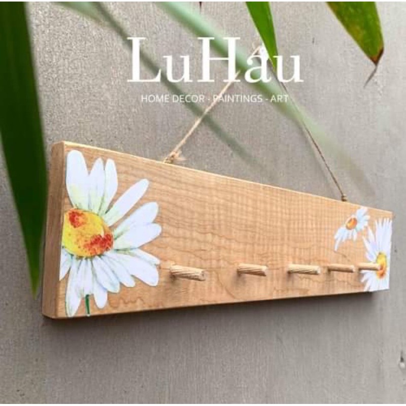 Giới thiệu Thanh móc treo đồ gỗ tự nhiên Luhau Decor Cúc hoạ mi gắn tường 5 móc không cần khoan đục, móc treo chìa khoá.