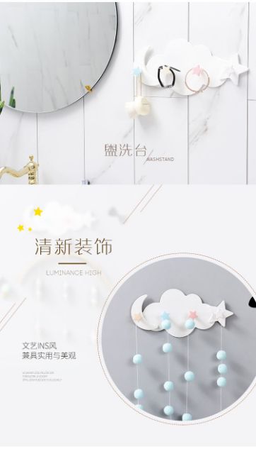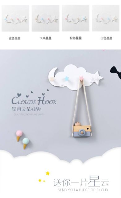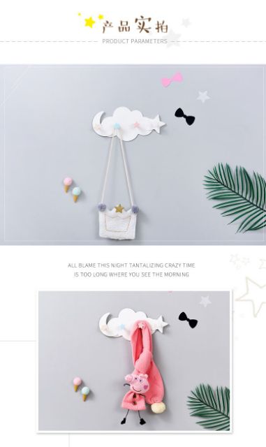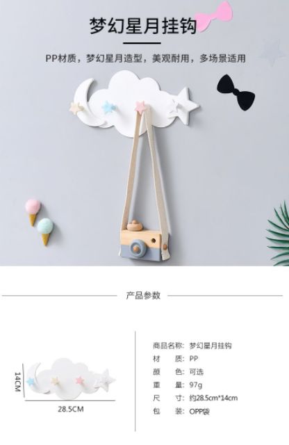 Giới thiệu Móc treo đồ hình đám mây, ngôi sao, trăng khuyết xinh xắn (dán tường)