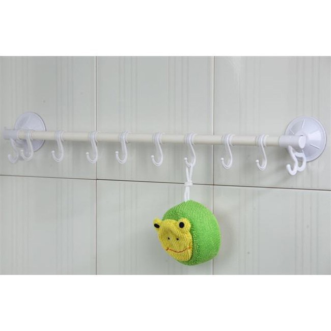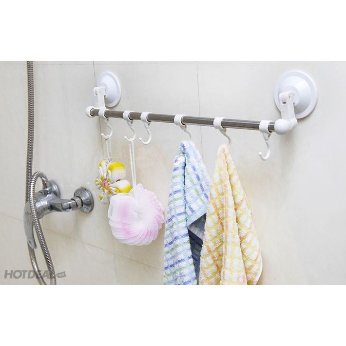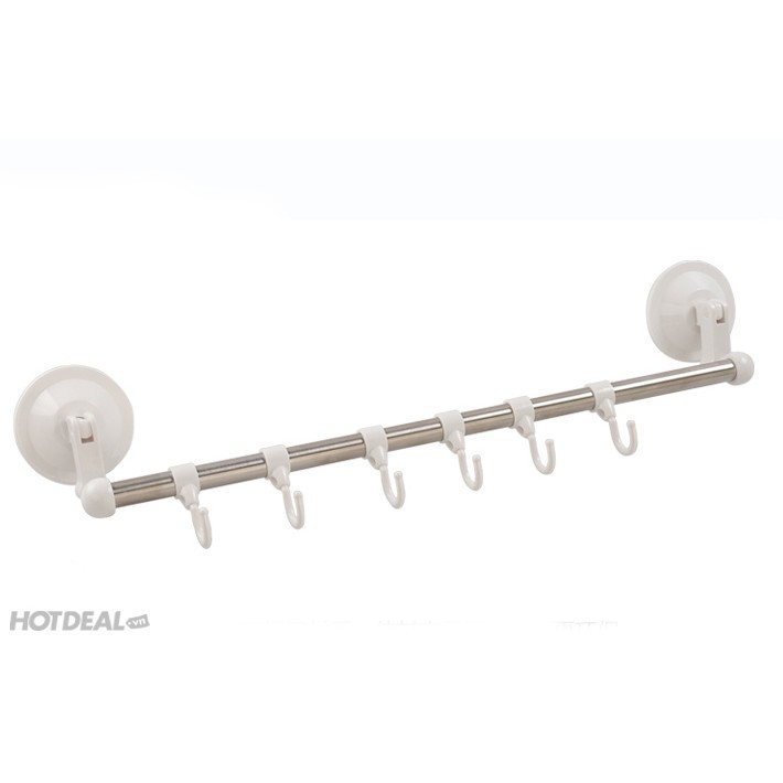 ❹ Móc treo đồ có thanh ngang bằng inox không gỉ, trên thanh có đến 8 móc treo có trượt để thay đổi vị trí giúp bạn treo các loại khăn, quần áo trong nhà tắm hay các vật dụng nhà bếp như muôi, dao, kéo, thớt một cách gọn gàng & dễ dàng nhìn thấy ngay khi cần sử dụng.