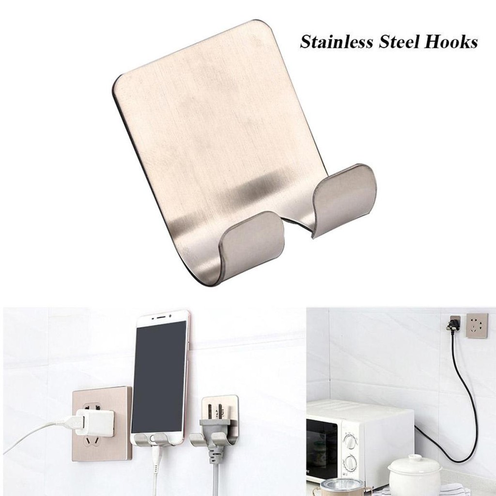 Giới thiệu Móc treo đồ inox dán tường đa năng , giá đỡ điện thoại sạc, để phích cắm điện, 1 móc treo (kích thước 6 x 4,5cm)