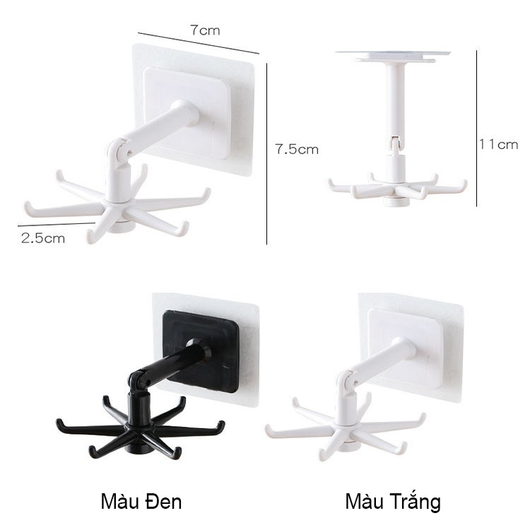 - Gồm 6 móc nhỏ để treo đồ, có thể xoay 360 độ.