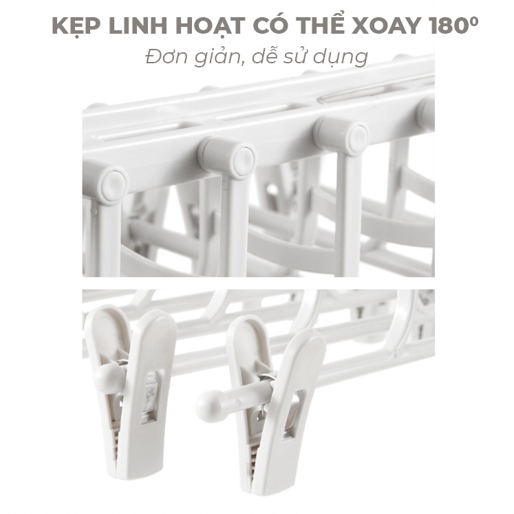 Kẹp có thể điều chỉnh kích thươc cho phù hợi với chiều rộng của quần áo khi phơi