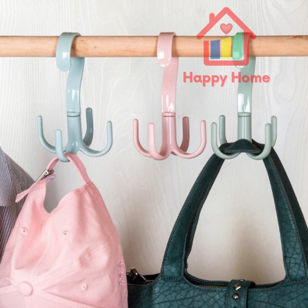 Nhà cửa & Đời sống > Dụng cụ chăm sóc nhà cửa > Dây phơi & giá phơi quần áo || Móc treo đồ túi xách quần áo 4 chân đa năng xoay 360 độ Happy HomeCòn hàng