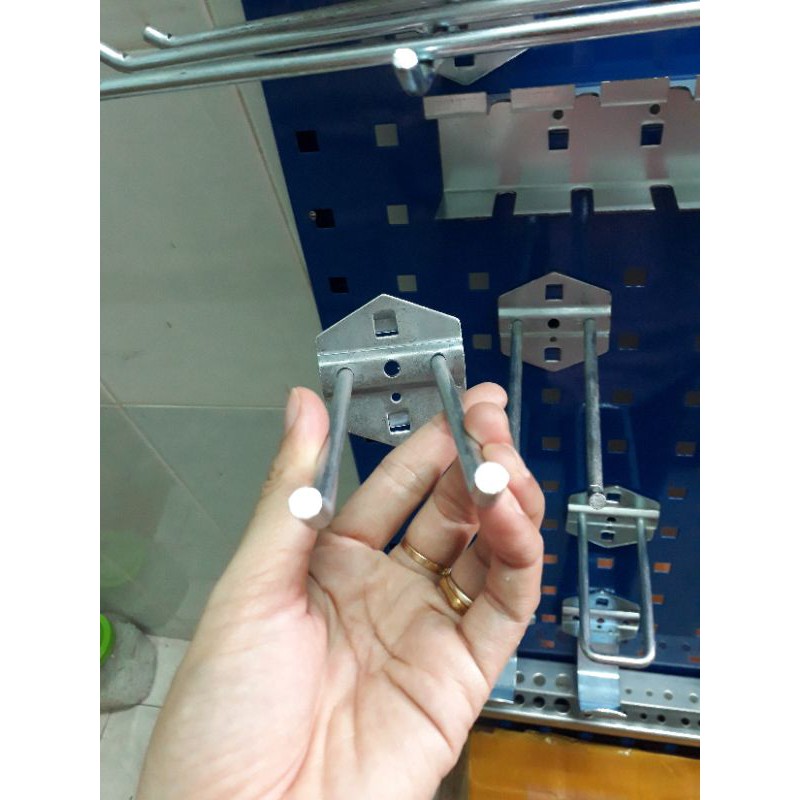 Móc kết hợp với tấm bảng treo có quy cách khoảng cách 2 tâm lỗ 3.8cm
