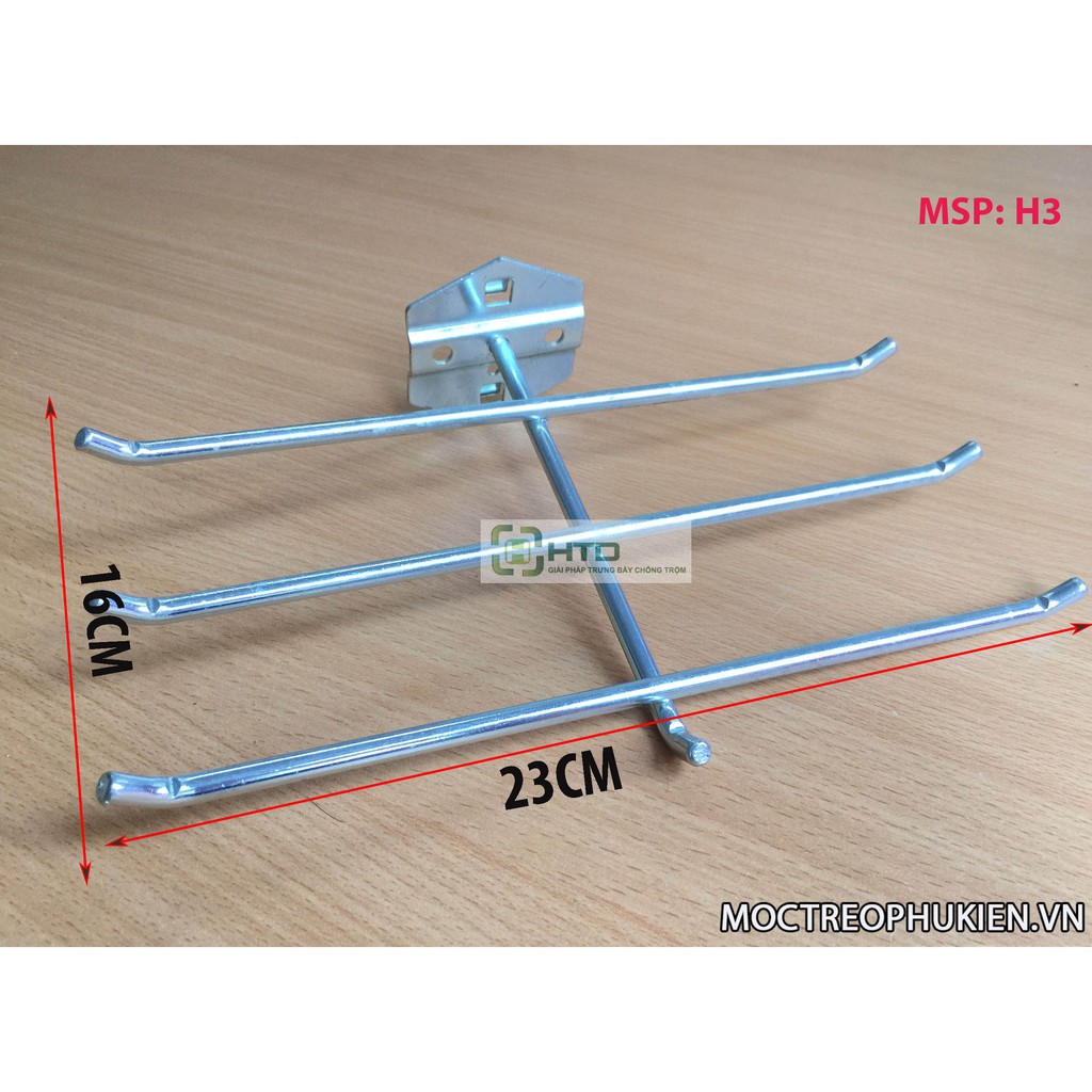 Móc treo dụng cụ cơ khí H3 là loại móc treo tổng hợp được nhiều các dụng cụ kim khí như : kìm, kéo, tua vít, cờ lê, đục, khoan, doa, đột, đá cắt, đá mài, lưỡi sắt, bản lề, bánh xem chổi quét sơn, thước dây, nivo, thước rút, khóa, kéo, cưa dao, máy khoan...