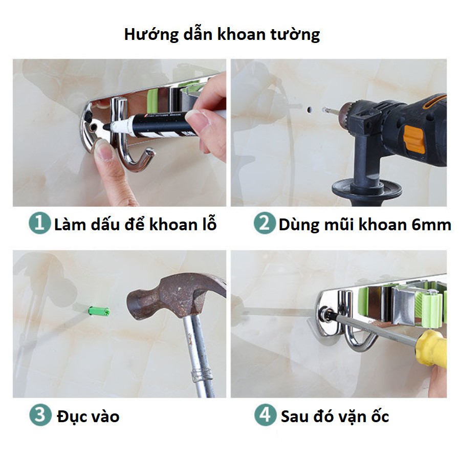 Tên sản phẩm : Móc treo dụng cụ vệ sinh SUS304 không dần khoan tườngChất liệu inox 304