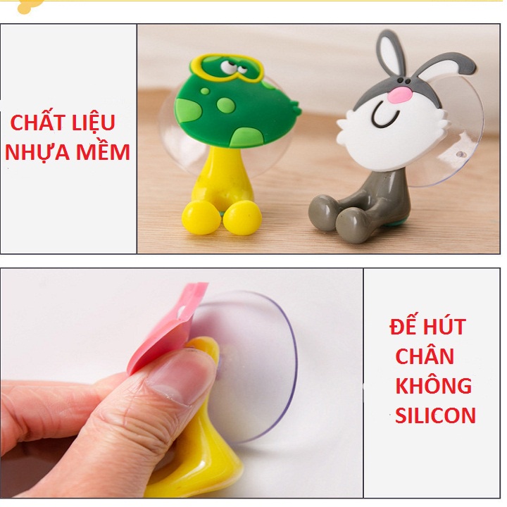 Móc Treo Kẹp Bàn Chải Hình Thú Đế Hút Chân Không