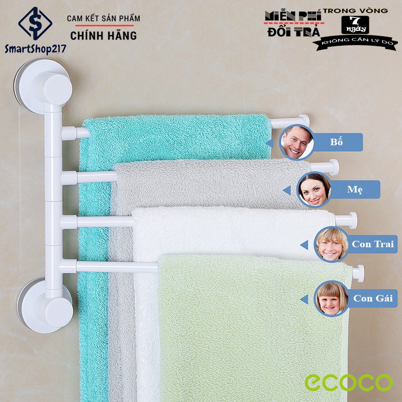 Bộ Móc Treo Khăn Xoay 180 Độ Hút Chân Không (Tặng Thêm Miếng Dán Cố Định) - Thương Hiệu Nhật Bản Ecoco