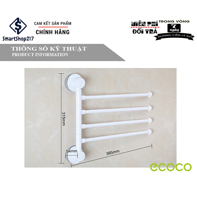👍 THÔNG TIN SẢN PHẨM✔ Tên sản phẩm: Bộ Móc Treo Khăn Xoay 180 Độ Hút Chân Không - Thương Hiệu Nhật Bản Ecoco
