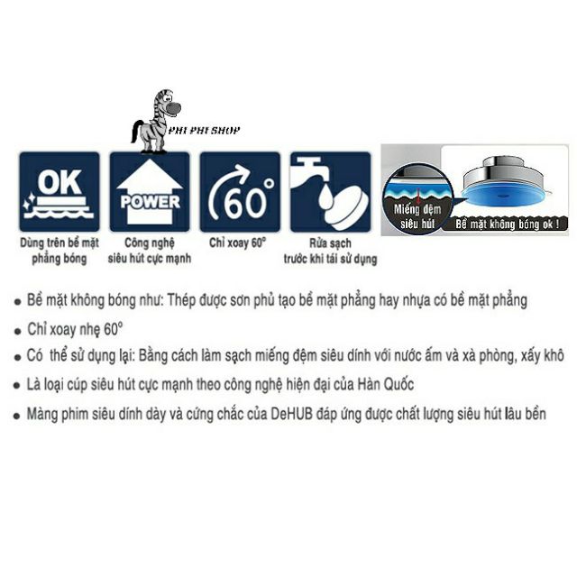 - Sử dụng trên các bề mặt nhẵn , có khả năng giữ chân không.