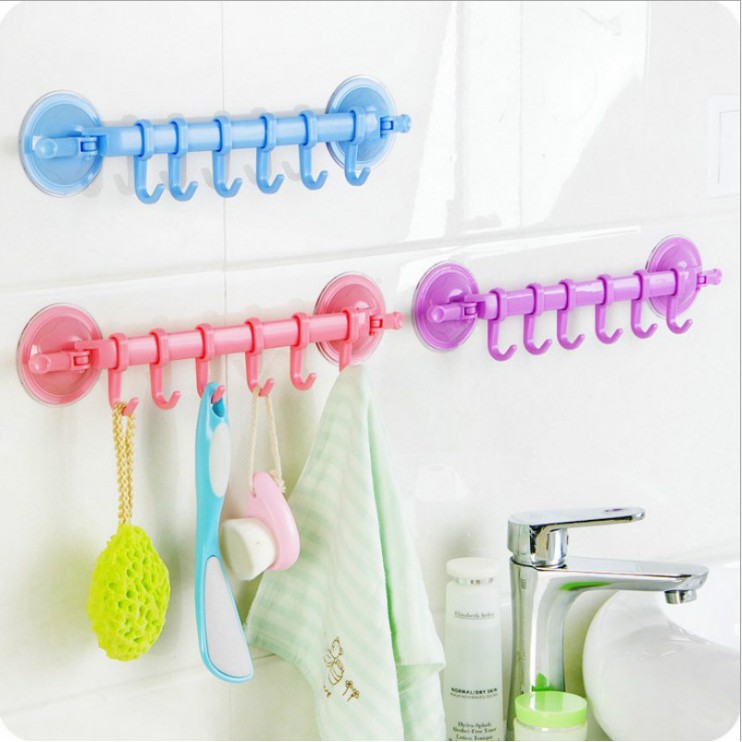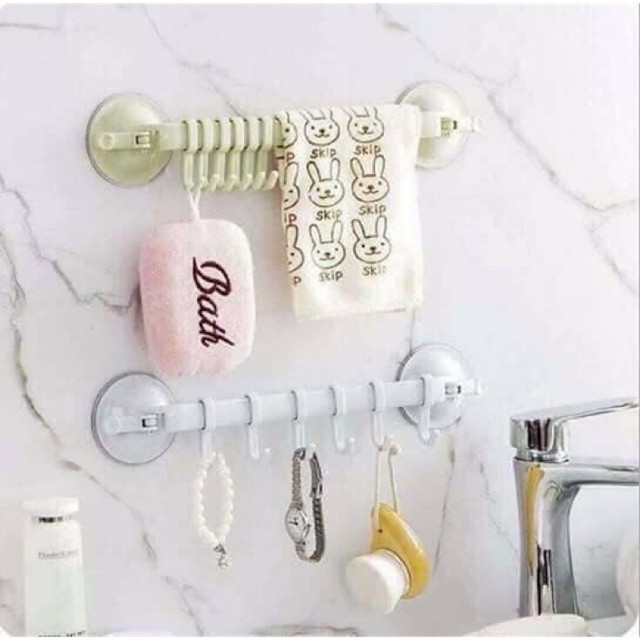 Thanh treo đồ nhà tắm, nhà bếp 6 móc có hút chân không 2 đầu linh hoạt- Móc treo đồ có thanh ngang bằng nhựa, trên thanh có 6 móc treo có trượt để thay đổi vị trí giúp bạn treo các loại khăn, quần áo trong nhà tắm