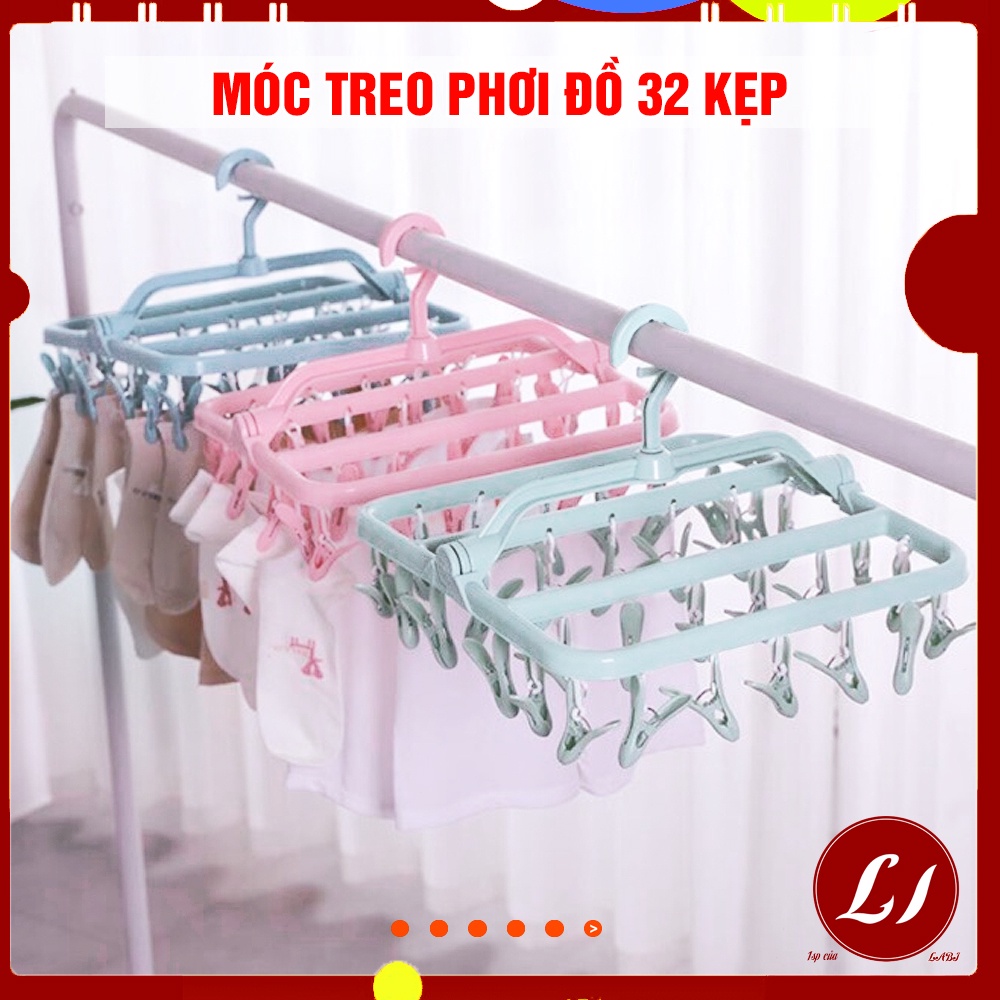 Nhà cửa & Đời sống > Sắp xếp nhà cửa > Mắc áo || Móc treo phơi đồ, tất, quần áo 32 kẹp tiện lợi - Loại vuôngCòn hàng