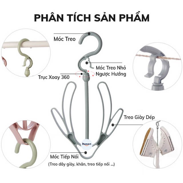 ⚜️Móc Treo Phơi Giày Dép Giá Lưu Trữ Bảo Quản Giày Dép Treo Đa Năng Xoay 360 Tiện Lợi - Sản phẩm sẽ giúp những vật dụng trong gia đình như: giày, dép đi trong nhà, tất, găng tay, ca-vát nhanh khô & gọn gàng hơn rất nhiều.ĐẶC ĐIỂM NỔI BẬT: