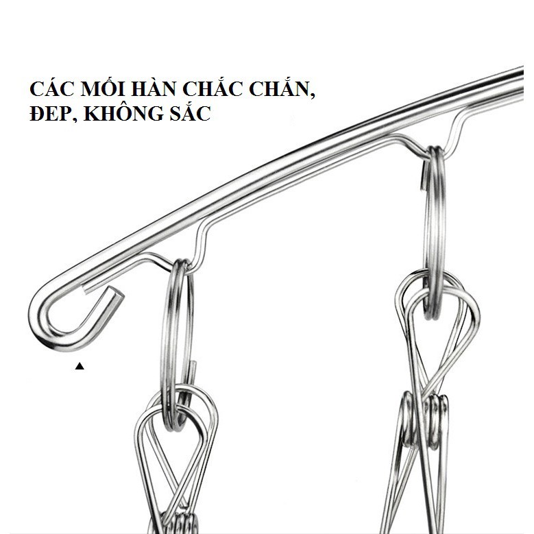 Móc treo phơi quần áo inox chống rơi 10/20 kẹp cố định.Treo đồ nhà tắm, khăn tay, tất vớ, đồ lót