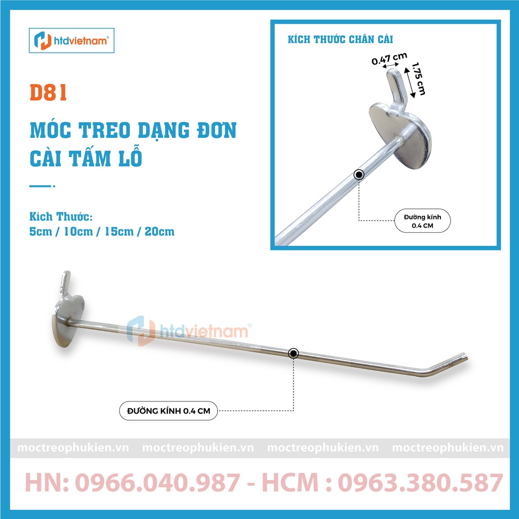 Móc treo ốp điện thoại dạng đơn một chân D81 có thể kết hợp với >>TẤM LỖ CÀI MÓC TREO <<