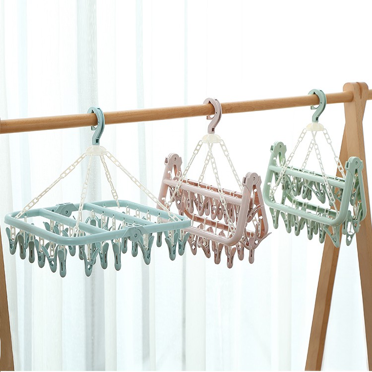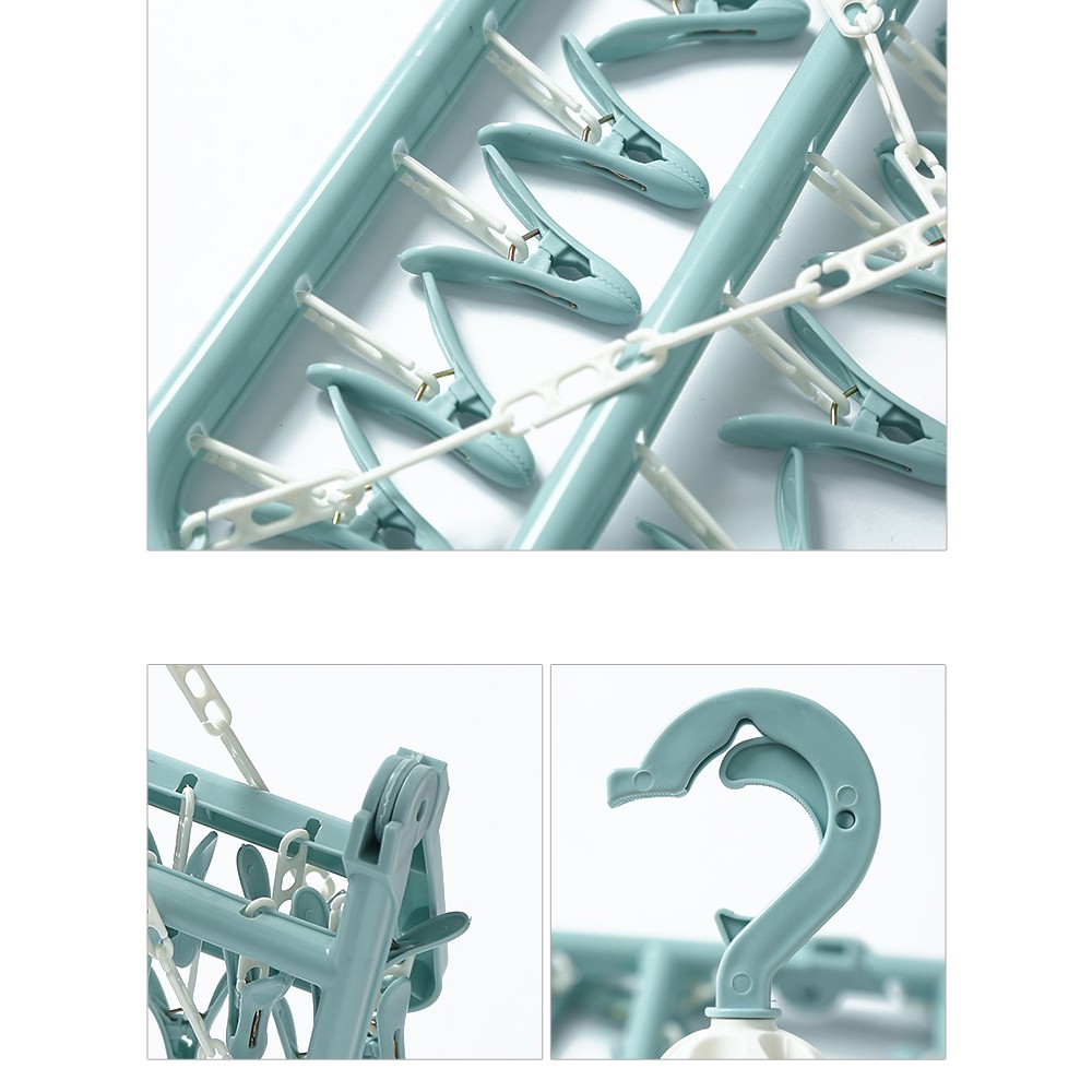 - Móc treo có 32 kẹp tiện dụng dùng để phơi đồ nhỏ, tất, tã lót, đồ của trẻ sơ sinh, trẻ nhỏ và rất nhiều đồ dùng khác…
