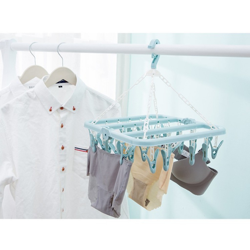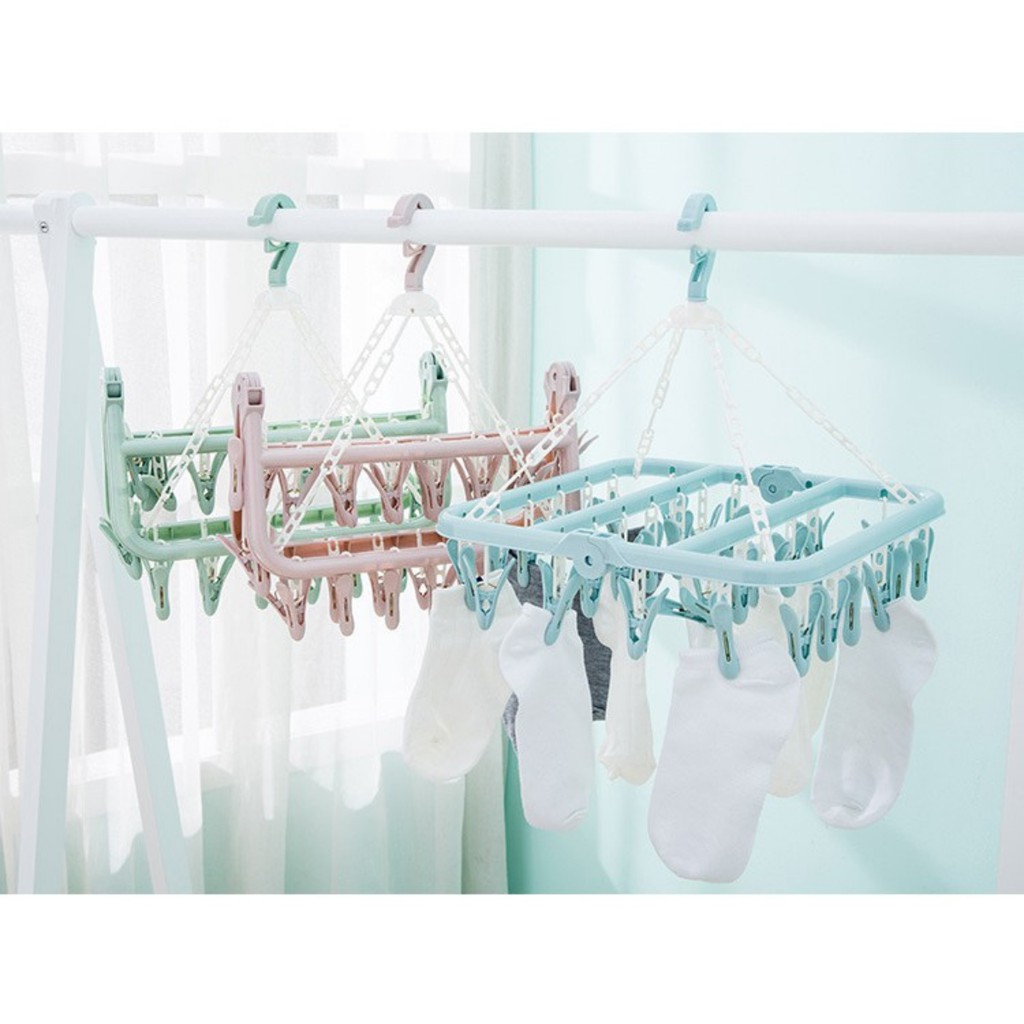 🍀 - Móc treo tất, quần áo 32 kẹp làm từ chất liệu an toàn với 32 chiếc móc đi kèm cho phép phơi những loại đồ nhỏ và nhanh khô.