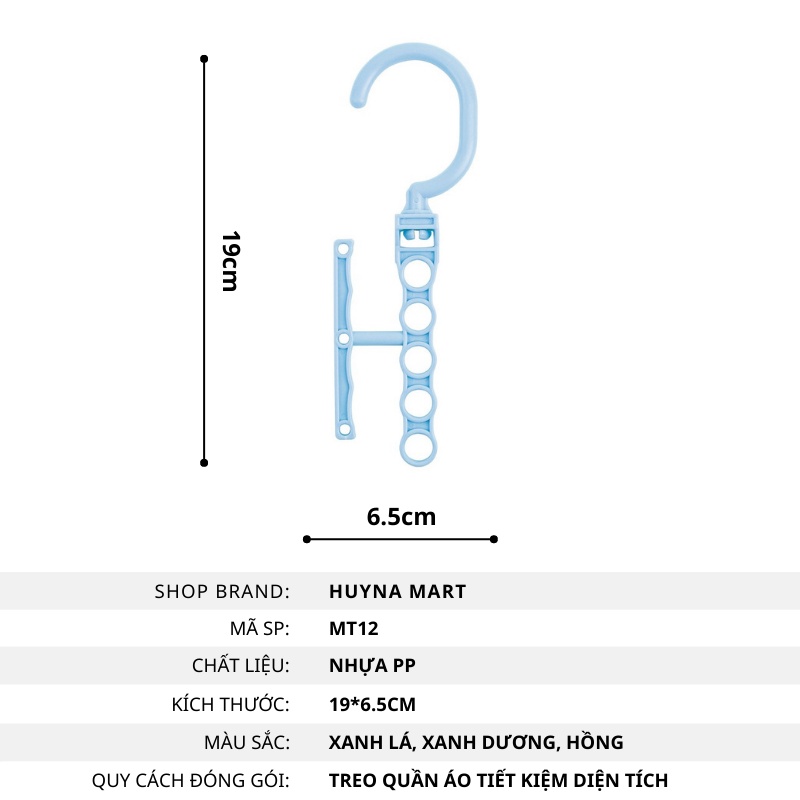 Móc Treo Quần Áo 5 Lỗ Đa Năng, Chống Trượt, Tiết Kiệm Diện Tích Mới Huyna Mart MT12*Thông tin sản phẩm: