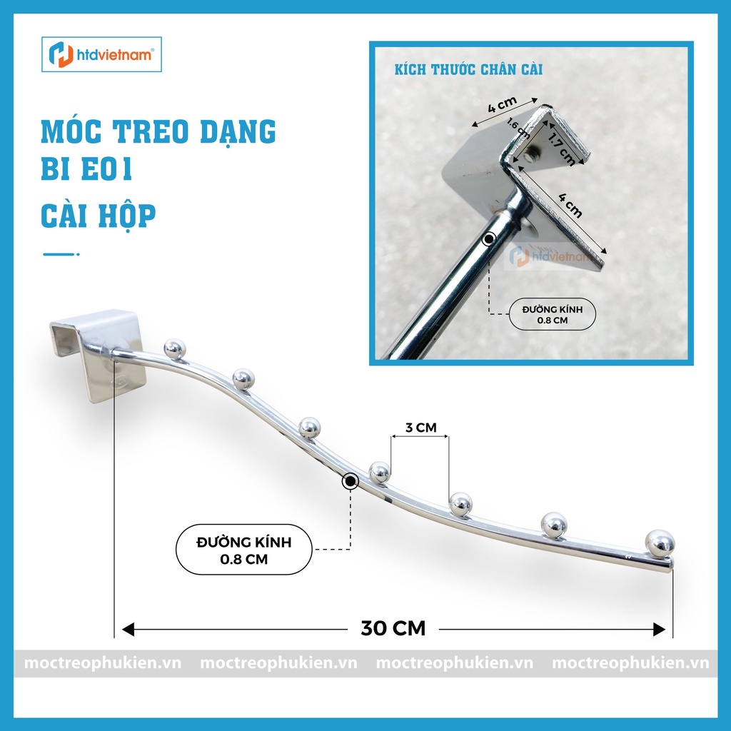 Giới thiệu MÓC TREO QUẦN ÁO 7 BI CONG CÀI VÀO THANH HỘP INOX E01