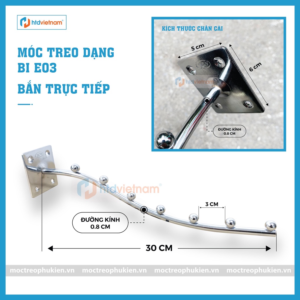 Giới thiệu MÓC TREO QUẦN ÁO 7 bi gắn trực tiếp lên tường E03