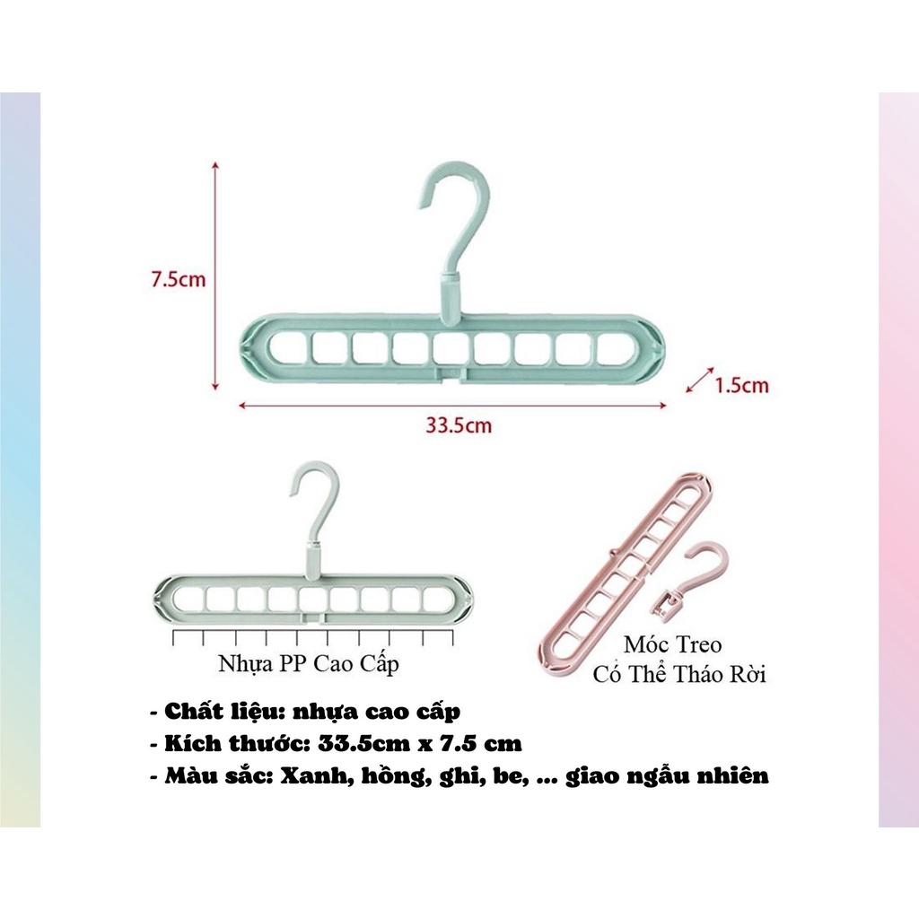 - Thông tin Sản Phẩm:Móc treo quần áo 9 lỗ đa năng thông minh, thanh treo đồ 9 lỗ tiết kiệm diện tích, đồ gia dụng tiện ích