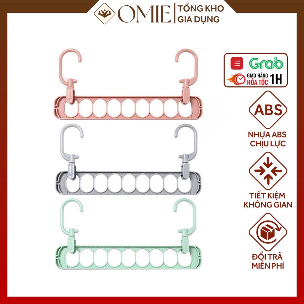 - Móc treo quần áo nhiều lỗ đa năng tiết kiệm diện tích Chất liệu Nhựa ABS cứng, chịu lực cao, an toàn cho sức khỏe.