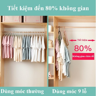 - Tiết kiệm đến 80% diện tích của tủ nhờ vào 9 lỗ tiện lợi trên móc