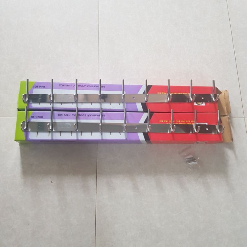 MÓC TREO QUẦN ÁO 9MẤU INOX CHO GIA ĐÌNH. kích thước: 3 cm x 62 cm.inox sáng bóng,không gỉ.Thiết kế để bắt vít lên tường.tiết kiệm diện tích.