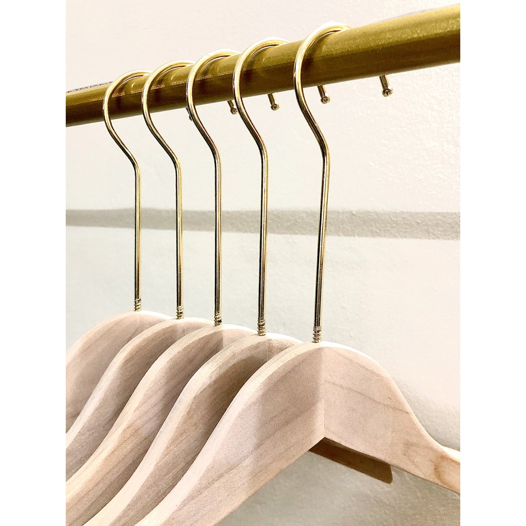 Nhà cửa & Đời sống > Sắp xếp nhà cửa > Mắc áo || móc treo quần áo bằng gỗ mộc đầu móc mạ vàng, dùng cho cửa hàng, shop thời trang, chụp ảnh liveCòn hàng