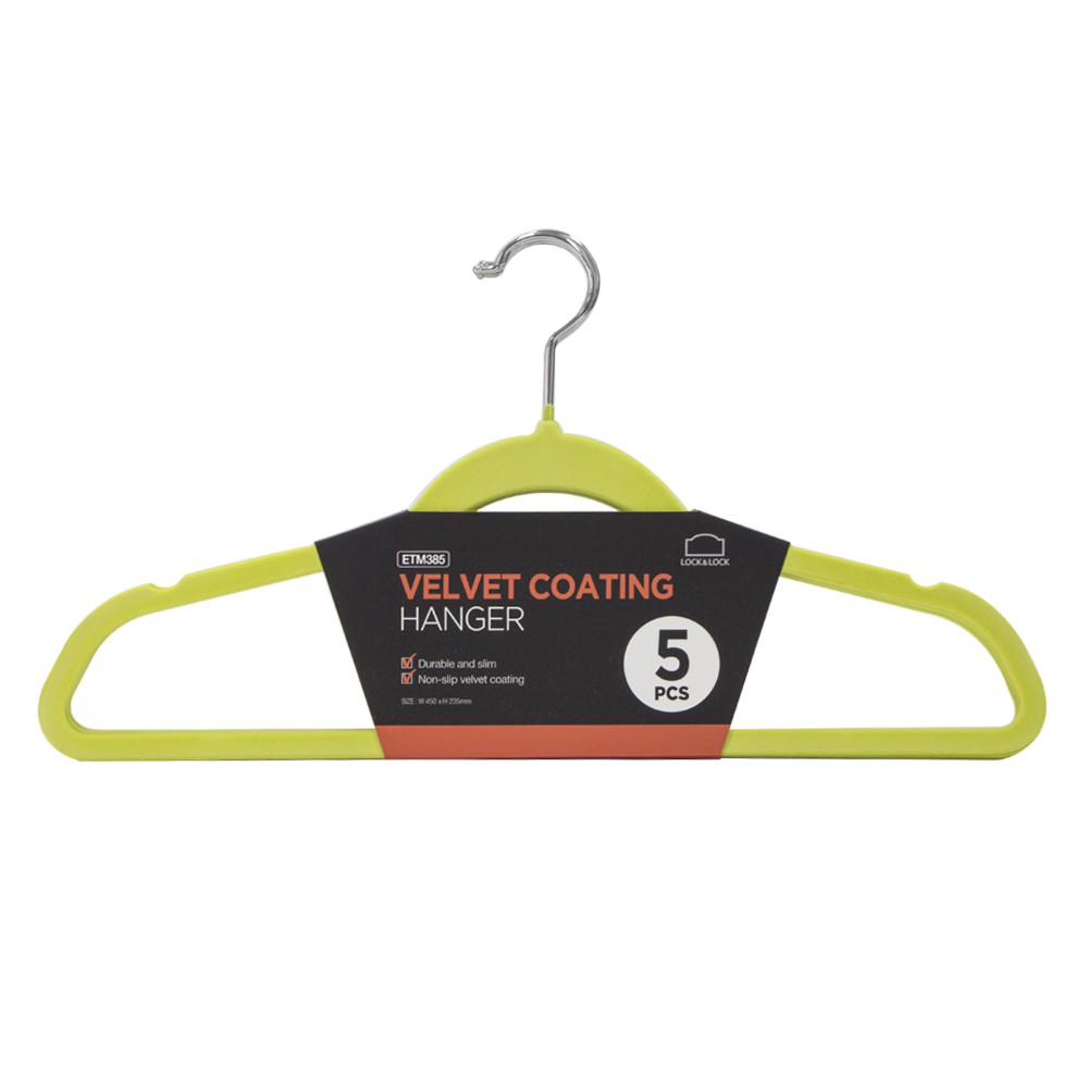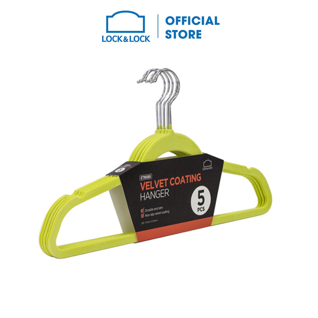 Nhà cửa & Đời sống > Sắp xếp nhà cửa > Mắc áo || Móc treo quần áo chống trượt Lock&Lock, bộ 5 chiếc, màu xanh lá ETM385Còn hàng