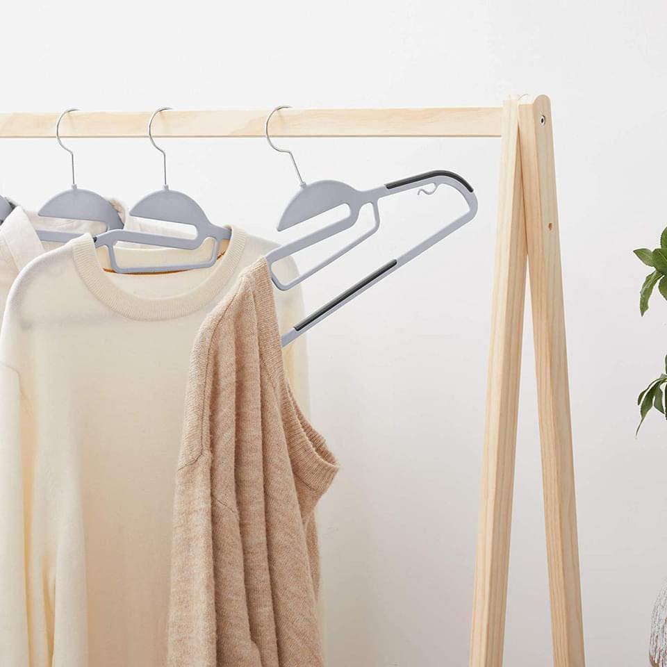 Phần đính cao su được gắn vào vùng vai và thanh giữa. Áo khoác và áo vest không còn trượt khỏi giá treo. Bạn có thể treo áo ba lỗ, áo ngực, v.v. trên móc nhỏ