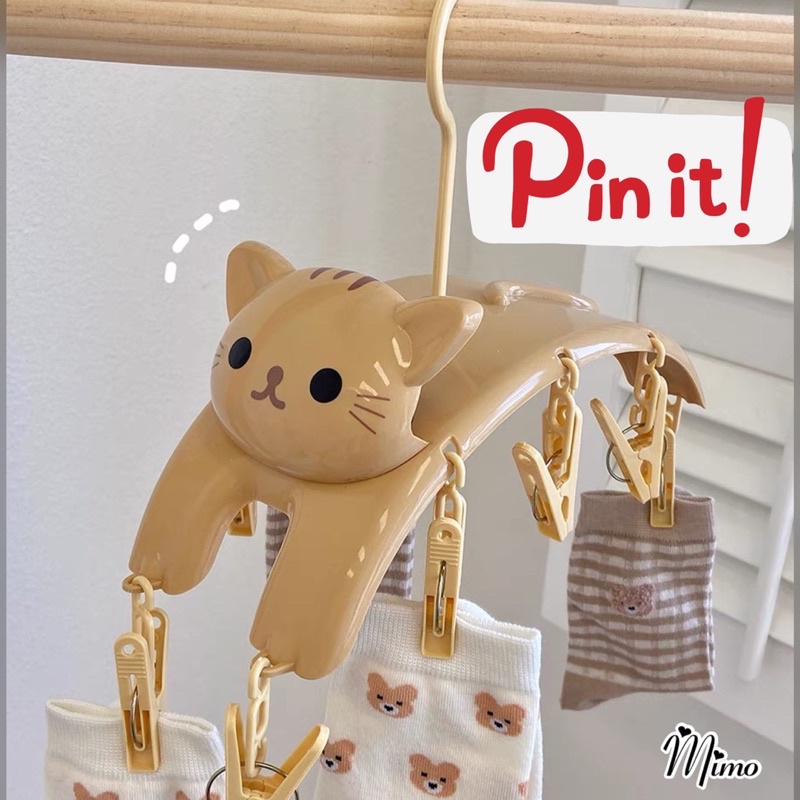 Nhà cửa & Đời sống > Sắp xếp nhà cửa > Móc treo || Móc treo quần áo cute hình mèo, thanh treo móc trùm phơi đồ lót, tất dễ thương có 10 kẹp tiện lợiCòn hàng