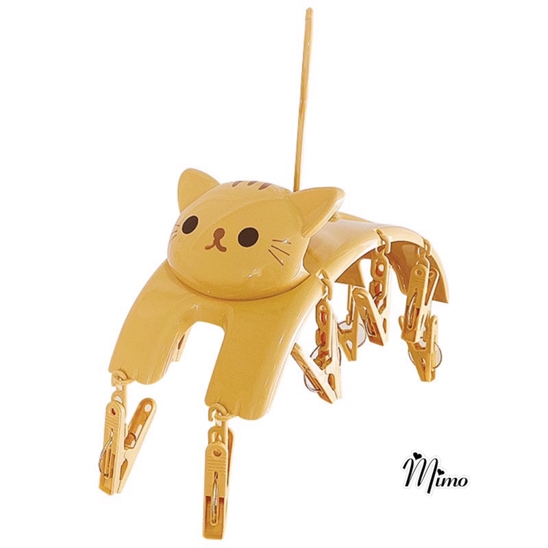 Giới thiệu Móc treo quần áo cute hình mèo, thanh treo móc trùm phơi đồ lót, tất dễ thương có 10 kẹp tiện lợi