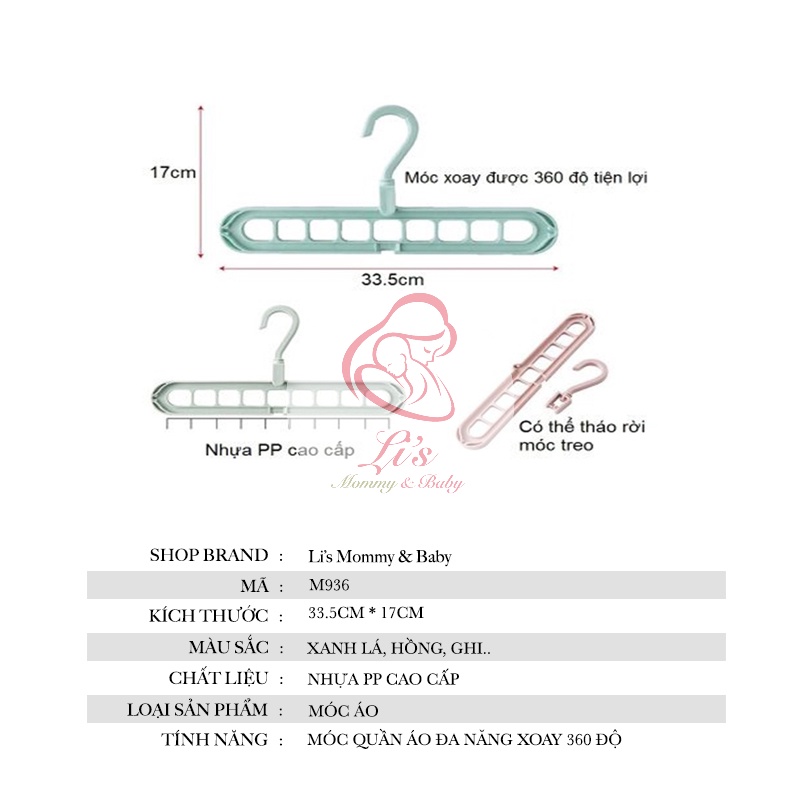 Nhà cửa & Đời sống > Sắp xếp nhà cửa > Mắc áo || Móc Treo Quần Áo Đa Năng 9 Lỗ Thông Minh Xoay 360 Nhựa Cao Cấp Gấp Gọn Cho Trẻ Em và Người Lớn Mã M936Còn hàng