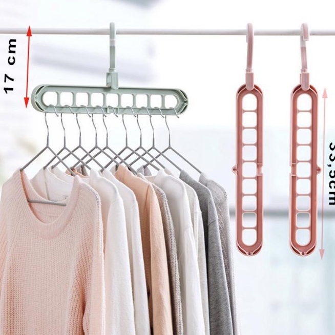 Móc treo quần áo đa năng 9 lỗ tiện dụng, Móc quần áo đa năng tiết kiệm diện tích