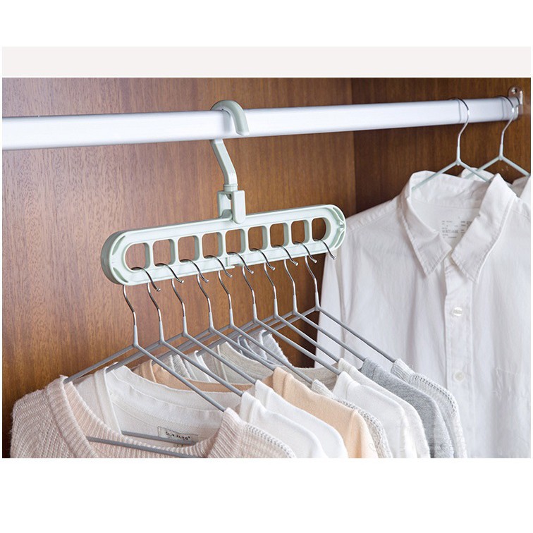 - Móc treo quần áo đa năng 9 lỗ tiện dụng giúp bạn tiết kiệm diện tích, treo thêm được nhiều quần áo.- Với thiết kế đầu xoay 360 độ giúp bạn có thể treo ngang, treo dọc tùy ý.
