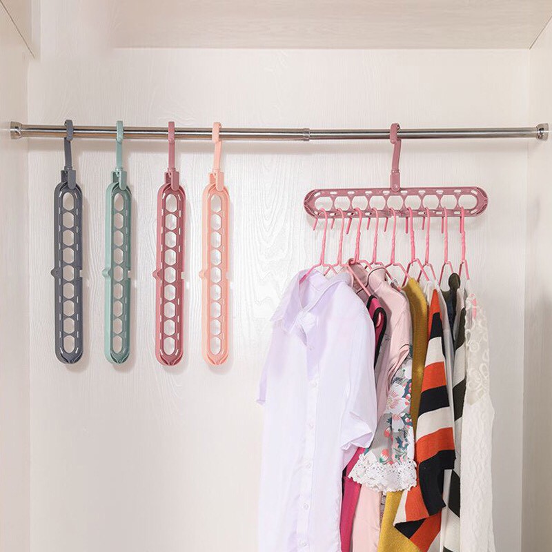 Móc treo quần áo đa năng 9 lỗ tiết kiệm diện tích thông minh - Móc treo nhỏ gọn xoay gấp gọn✅ Giúp tiết kiệm diện tích tủ quần áo và sắp xếp tủ quần áo gọn gàng, dễ tìm kiếm, dễ lấy.