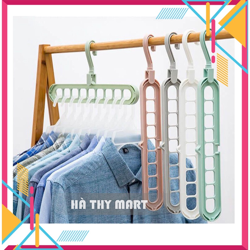 - Móc treo quần áo đa năng tiện ích tiết kiệm diện tích (9 lỗ) thiết kế thông minh, tiện lợi treo được 9 móc trên 1 dàn. Treo được nhiều quần áo. Treo ngang treo dọc chỉ cần 1 động tác nhỏ.