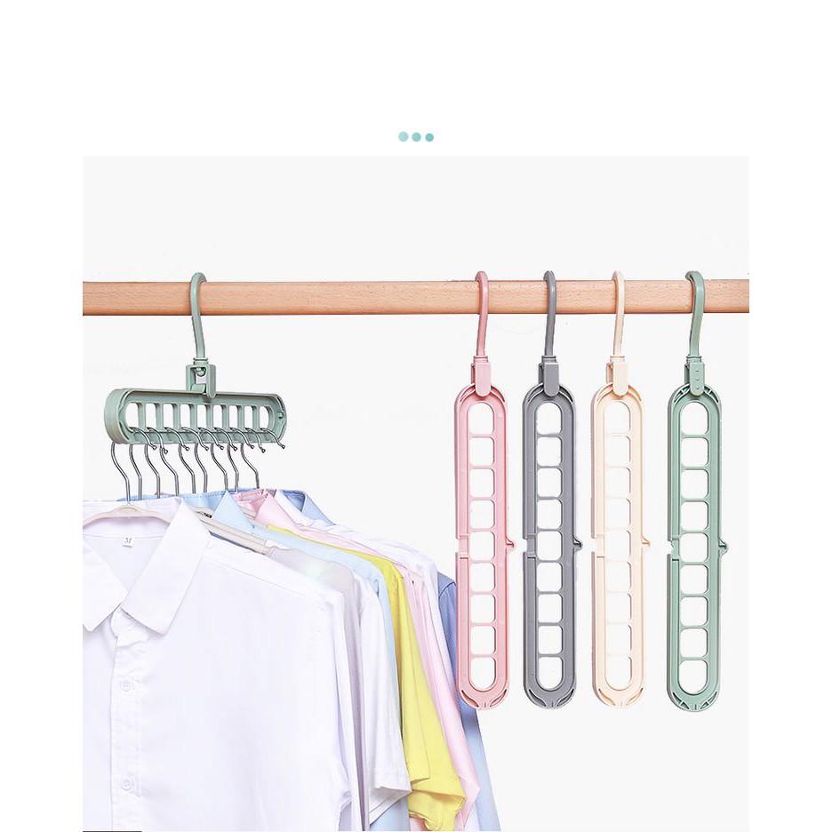 Móc treo quần áo❤️SALE❤️Móc treo quần áo đa năng 9 lỗ tiết kiệm diện tích, thông minh, nhỏ gọn xoay gấp gọn M9