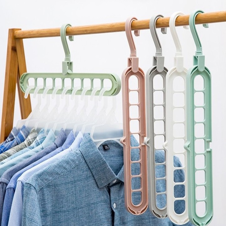 ✅Móc treo quần áo đa năng tiện ích tiết kiệm diện tích (9 lỗ) thiết kế thông minh, tiện lợi treo được 9 móc trên 1 dàn. Treo được nhiều quần áo. Treo ngang treo dọc chỉ cần 1 động tác nhỏ. Chất liệu Nhựa ABS cứng, chịu lực cao. an toàn cho sức khỏe.