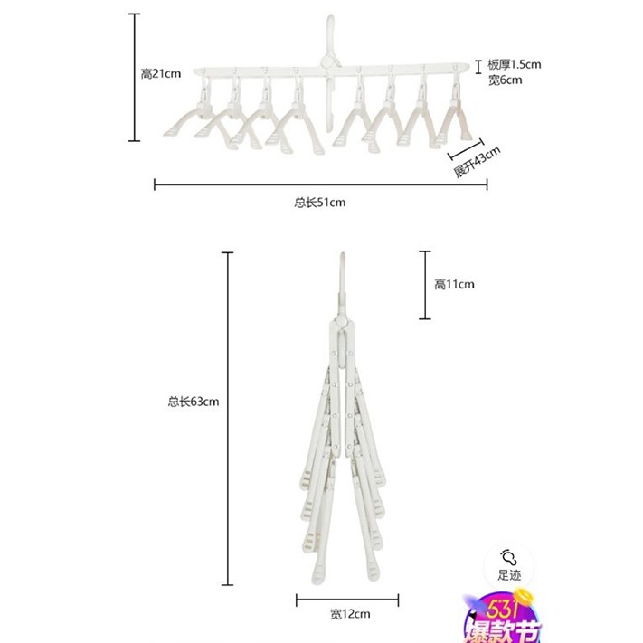 Sản phẩm được thiết kế gồm 1 khung gắn liền 8 móc gấp gọn thông mình và 2 móc trên dưới :