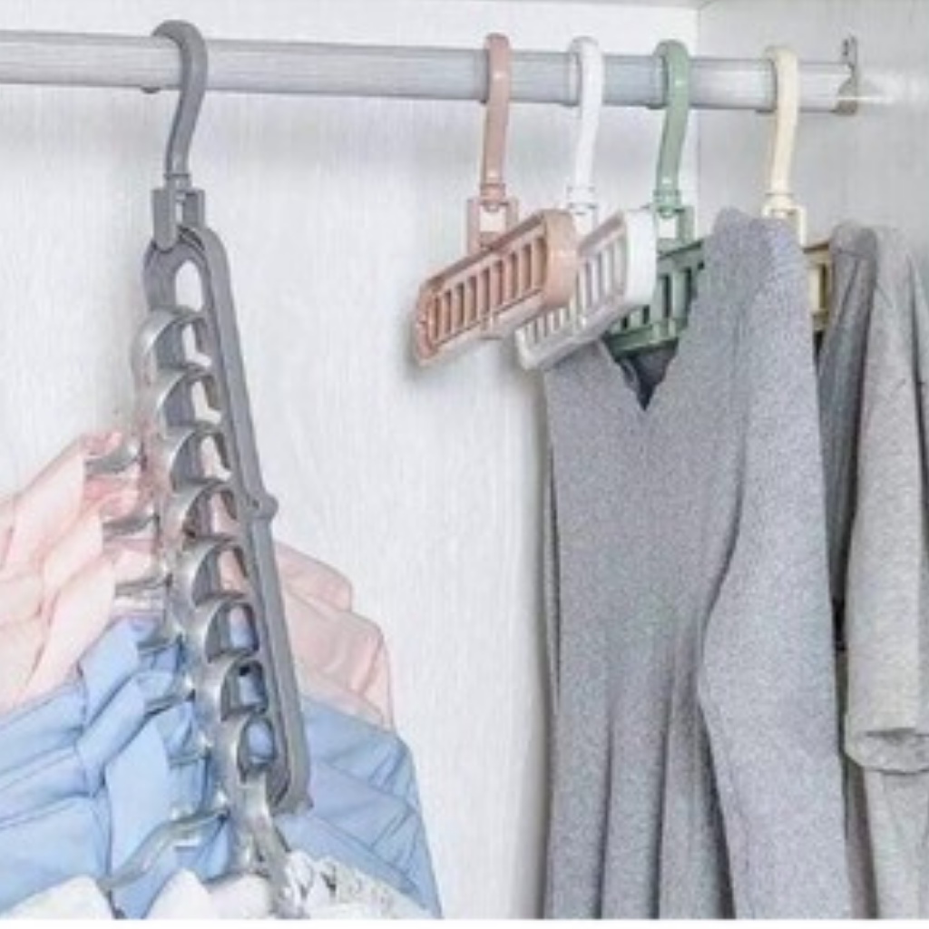 👉 Móc treo quần áo đa năng 9 lỗ giúp tiết kiệm diện tích tủ quần áo và sắp xếp tủ quần áo gọn gàng, dễ tìm kiếm, dễ lấy.